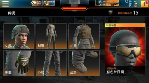 狙神荣耀游戏中共有6类装备:“头部”“制服”“护甲”“手套”“护膝”“战靴”。在这6类中都有不同的装备,且每一个装备都会有不同的效果