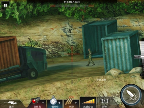 拉近你与敌人之间的视野距离之后,就要精确瞄准敌人,准备进一步的攻击。