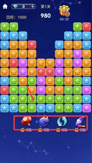 2、注意观察消除界面中的特殊元素与道具,合理利用它们能快速清除大片星星。掌握连击技巧可以大幅提升通关效率。