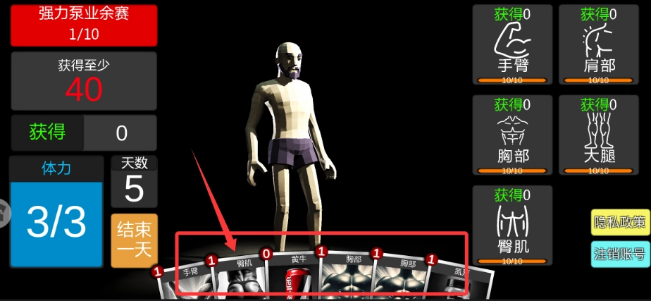 2、独特的健康平衡机制颇具创意,玩家需在肌肉增长与身体健康间寻找平衡点,过度追求短期效果可能导致角色状态下滑。