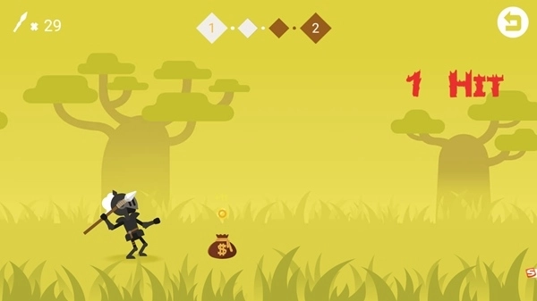 4、游戏的玩法非常简单粗暴,点击空白处猎人后退,点击武器往后拉可控制角度和力度,放开后就能发射。