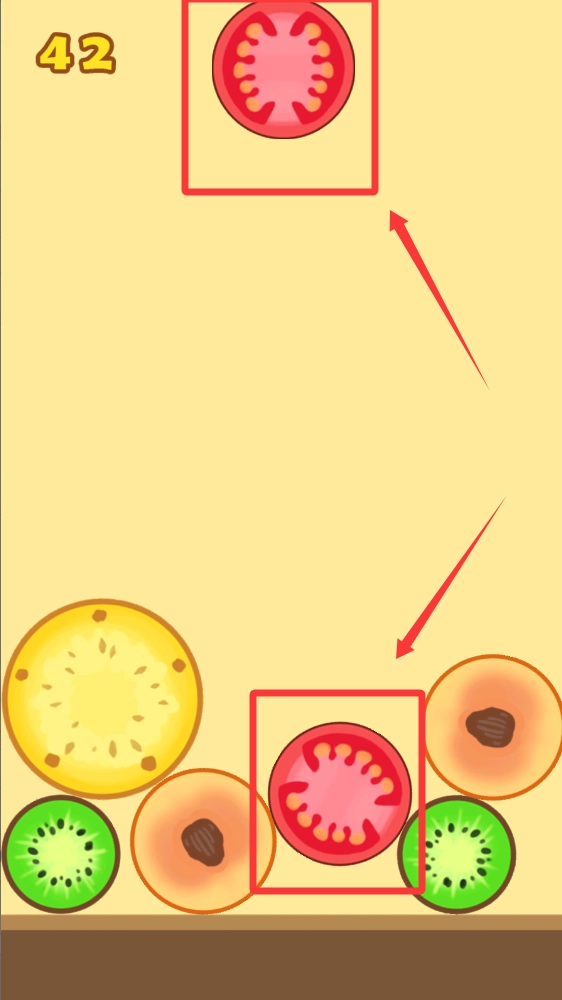 1、界面上会提示下一个要出现的水果形状,这样就能将相同形状的水果移动到一起了。