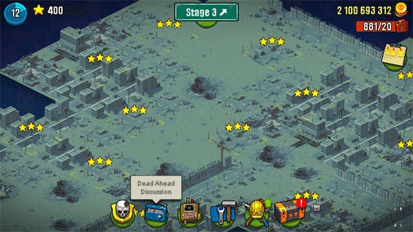 2、第二大关,难度上来了,跑尸增多了,拿三星有困难,需要记住僵尸的路线,掌握对投弹兵的使用方法,实在过不去就卖车(损失巴士血量,让卡尔杀僵尸)。