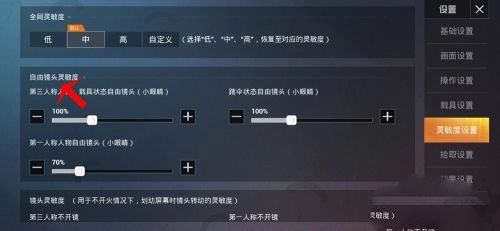 在开镜后的灵敏度,灵敏度越大,镜头移动速度越快;灵敏度越小,镜头越稳。