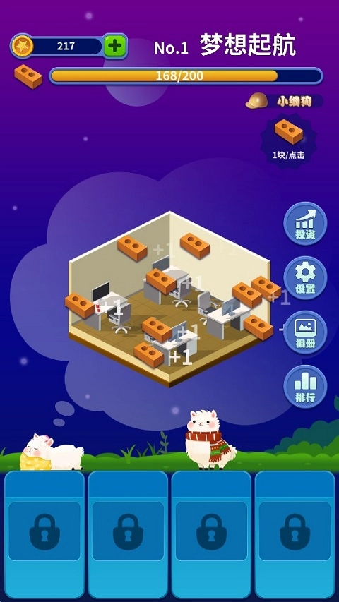 《梦境建筑师》手机版是一款休闲风格的点击+模拟建造游戏。某天,来自外星球的神秘访客悄然降临,它们怀着不为人知的目的侵入了小羊驼的梦境世界。现在,你需要协助小羊驼提升自身能力,在梦境里攻克一个又一个的建造挑战!游戏操作十分简便,只需点击主界面中的地块,通过搬砖操作就能完成各类建造任务。