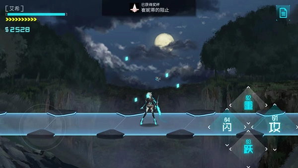 2、我们可以通过左边屏幕来控制艾希的左右方向移动,右边分别是闪、重、攻和跃,也就是闪避、重击、普通攻击和跳跃,玩家需要灵活运用不同的按钮来获得更好的游戏体验,