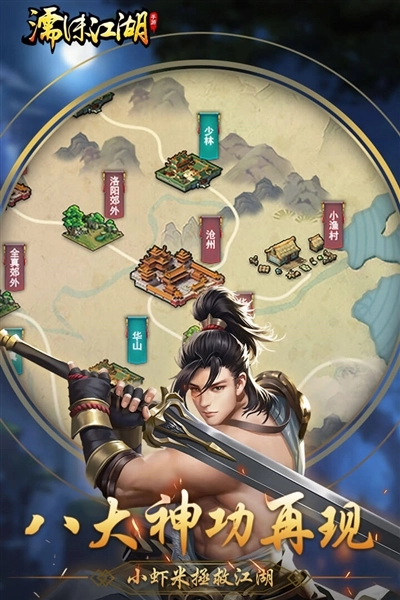目前已暂绘制了8大主要城市:小渔村、沧州、洛阳、快活林、成都、苗疆、杭州、桃花岛,故事剧情贯穿其中,剧情紧凑不拖沓,环环相扣