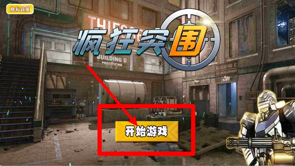 1.开局画面:点击“开始游戏”按钮即可进入战斗场景,画面细节精致,瞬间点燃玩家的射击激情与挑战欲望。
