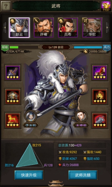 游戏以魏蜀吴三个国家阵营为背景,让玩家体验到正统三国的策略战争。在游戏中,替换武将、提升实力、选择最强武将成为关键。我特别推荐张辽这位输出型武将,能在战场上发挥重要作用。通过洗髓功能提升武将资质,改变攻防兵资质分配,让战斗更具挑战性和策略性。