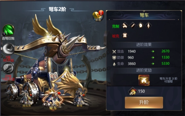 器械解锁后可上阵出战,且器械大多针对性克制武将,可根据敌军阵容上阵对应器械提高容错率