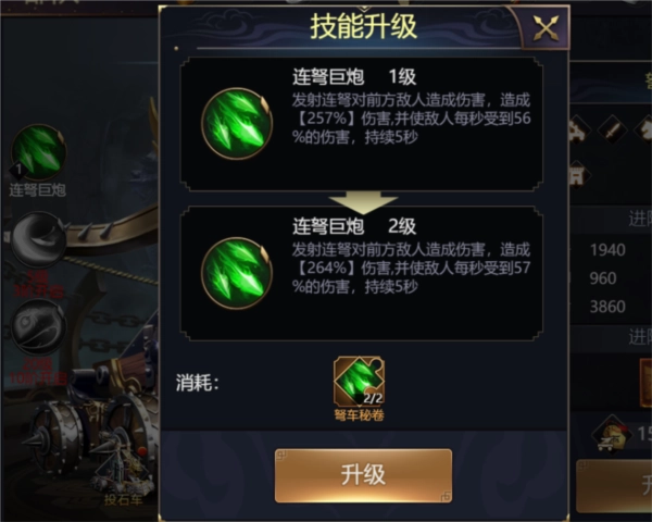 器械技能升级可提升器械技能威力,需消耗技能秘卷,可通过活动获取