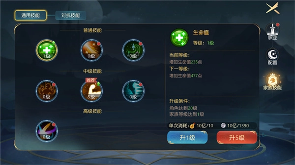 8、然后加入家族后,可以激活家族技能功能,通过消耗贡献以及银币,即可激活升级家族技能,带来属性提升