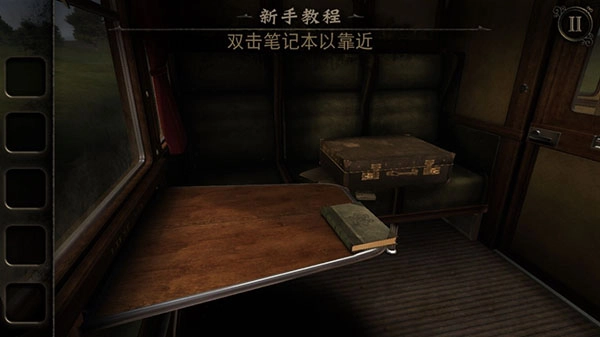 1、首个场景在一个车厢内,按照教程提示,“划动屏幕查看四周”。查看完毕,出现下一条指引“双击笔记本以靠近”。
