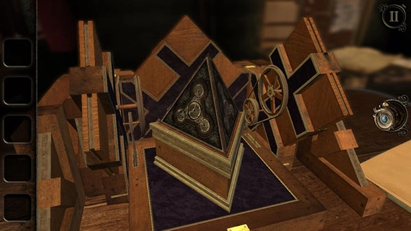 4、然后火车会驶入一段黑暗的隧道,之后桌子上会出现一个木盒子,双击以靠近木盒子。
