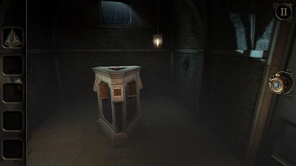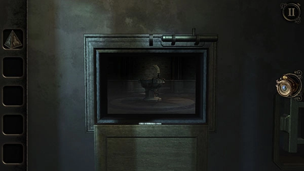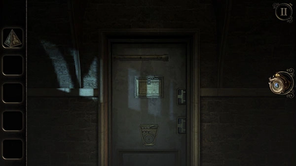 12、取出三角后场景会切换,玩家会发现自己置身于一个密室中,面前有一扇紧锁的门,此时需要双击门上红圈中的窗户,打开窗户。