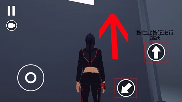 4、按住右侧的上箭头即可进行跳跃,左箭头代表环顾四周。