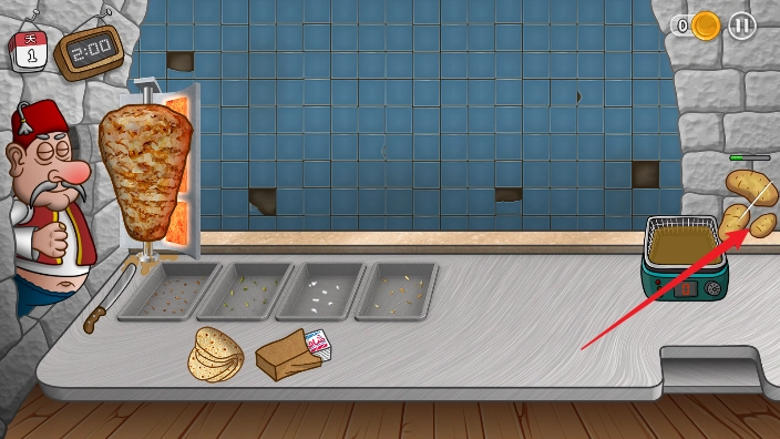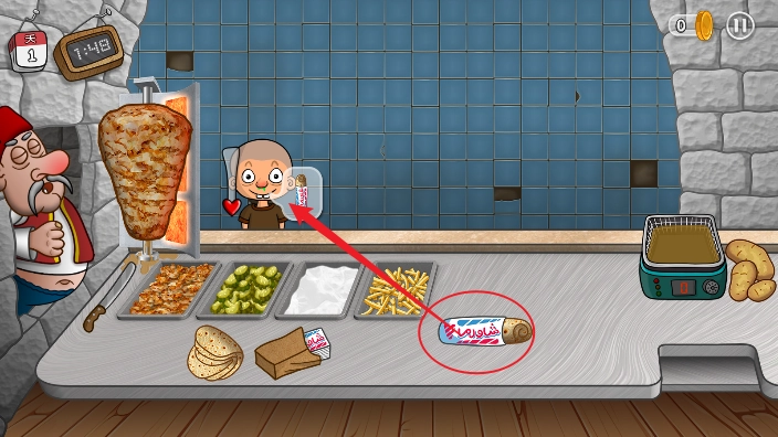4、在里面将各类食材进行准备,然后将相应的沙威玛制作完成,将制作好的沙威玛给顾客即可获得金币。