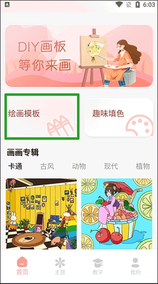 1、运行游戏后,在首页找到并点击“绘画模板”按键;