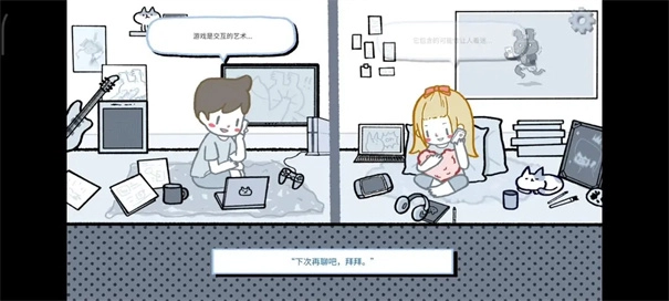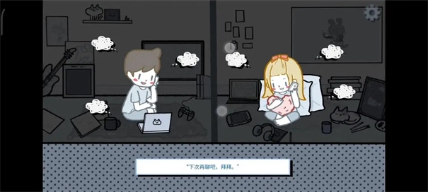 8.点两个人共同有的东西:①游戏机、手柄;②吉他、耳机③两只猫咪。 然后双指拉手机屏幕,把屏幕拉黑出现三朵云。