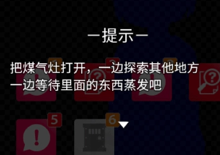 描述3 :“烹饪台上的圆底锅”→“开启煤气灶”→调查其他地方等锅内液体干了→“锅底的银色小钥匙”(新关键词)。