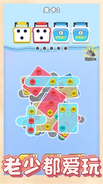 游戏中的螺丝和块都有不同的颜色、当玩家拔出某种颜色的螺丝时、相同颜色的块会被消除。