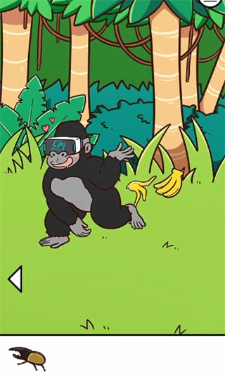 4、第一个场景中,第二排第三个罐子里有VR眼镜,注意不要砸到拥有毒蜘蛛的罐子,否则游戏直接结束。取得VR眼镜后,直接给大猩猩戴,大猩猩就会扔掉香蕉走开。这个时候玩家先拿香蕉皮,然后再拿香蕉就能过关了