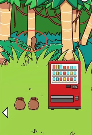 2、先在第三个场景中的草丛里拿到木棒,用木棒敲击树干就能获得椰子。第二个场景中有两个椰子,第一个场景中也有两个椰子。两种过关方式。第一种是敲击第二个场景中的树干,拿到有食物的椰子后吃掉就可以了。第二种是敲击第—个场景里的椰子,拿到硬币后到贩卖机那里换取吃的