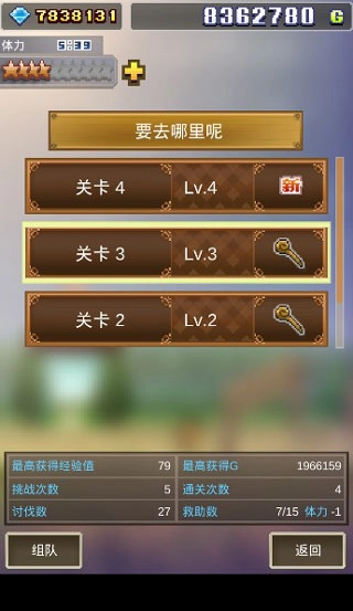 5、卡关就去刷以前的图,不要冒着风险一次一次刷新图,刷刷以前的图,得的钱可以用于升级。