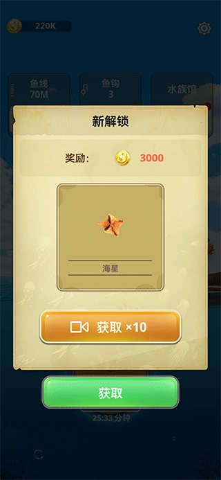 三、当解锁新鱼后,还会有相应金币奖励,点击获取即可