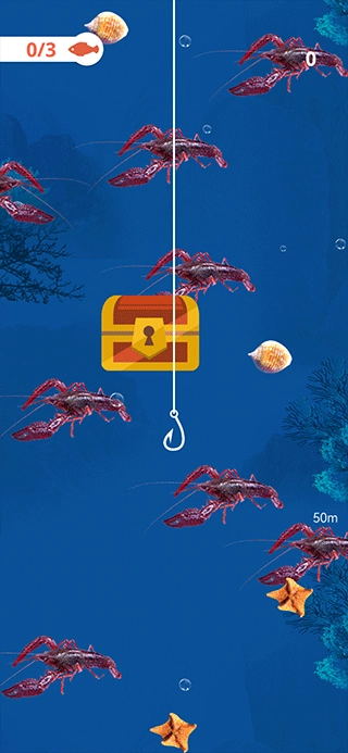 二、当鱼钩进入海里时,通过左右滑动可以收获更多的鱼类