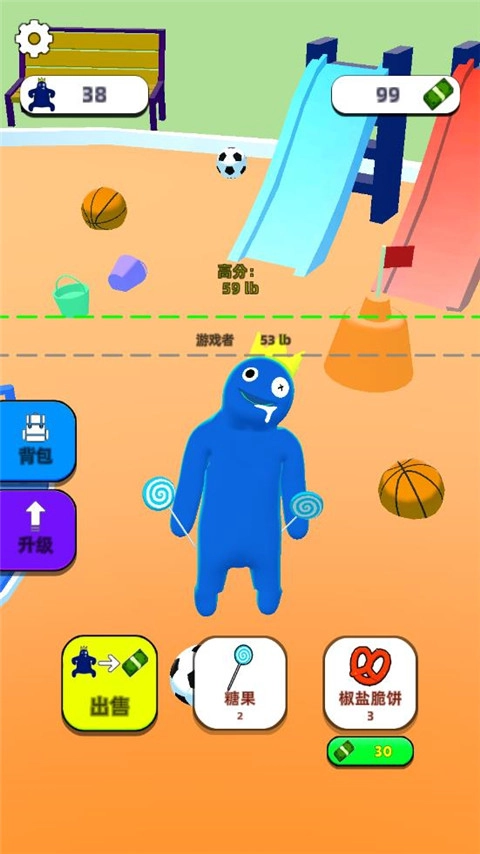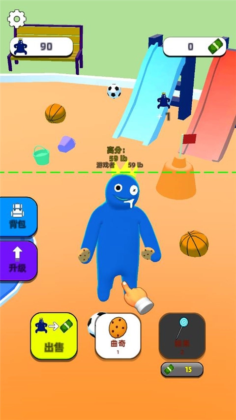 1、彩虹朋友的肚子是一个黑洞,能吞下一切物品,你作为它的好朋友,赶紧开始投喂彩虹朋友,把它喂成一个大胖子