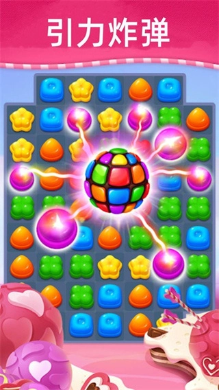 在游戏中,玩家只需将相邻三个及以上相同颜色的糖果连接起来就能完成消除,过程中还会碰到各类障碍机制,此时可以借助道具系统来助力玩家顺利通关。
