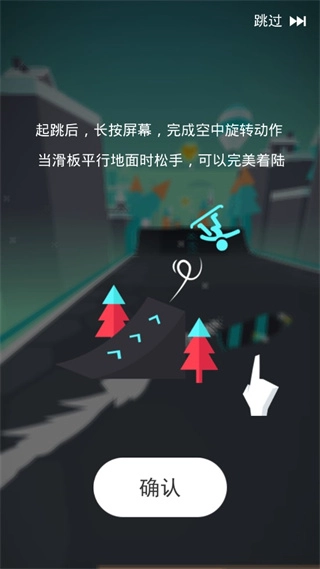 5、起跳后长按屏幕就可以完成空中旋转高级动作,玩滑板平行地面是就可以松手完美着陆了。