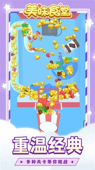 《美味食堂》是一款轻松有趣的模拟经营游戏,能让玩家体验经营的乐趣。在游戏中,玩家将化身爆米花店老板,从一台小型爆米花机起步,通过合理经营与管理,逐步扩大店铺的范围和规模。同时,玩家还可以自由搭配原材料,研发各种新口味的爆米花,满足不同顾客的口味需求。此外,合理分配资源、为顾客提供优质服务,提升店铺知名度,也能帮助玩家亲手打造属于自己的爆米花帝国。
