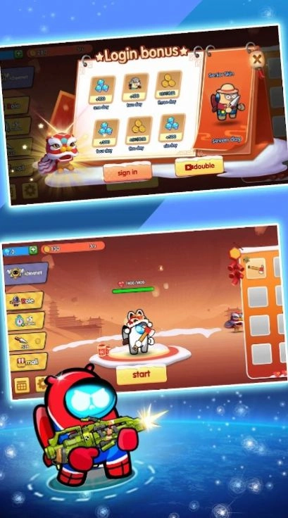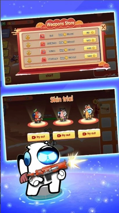 3、通过收集金币和宝石升级,提升武器和生命值。