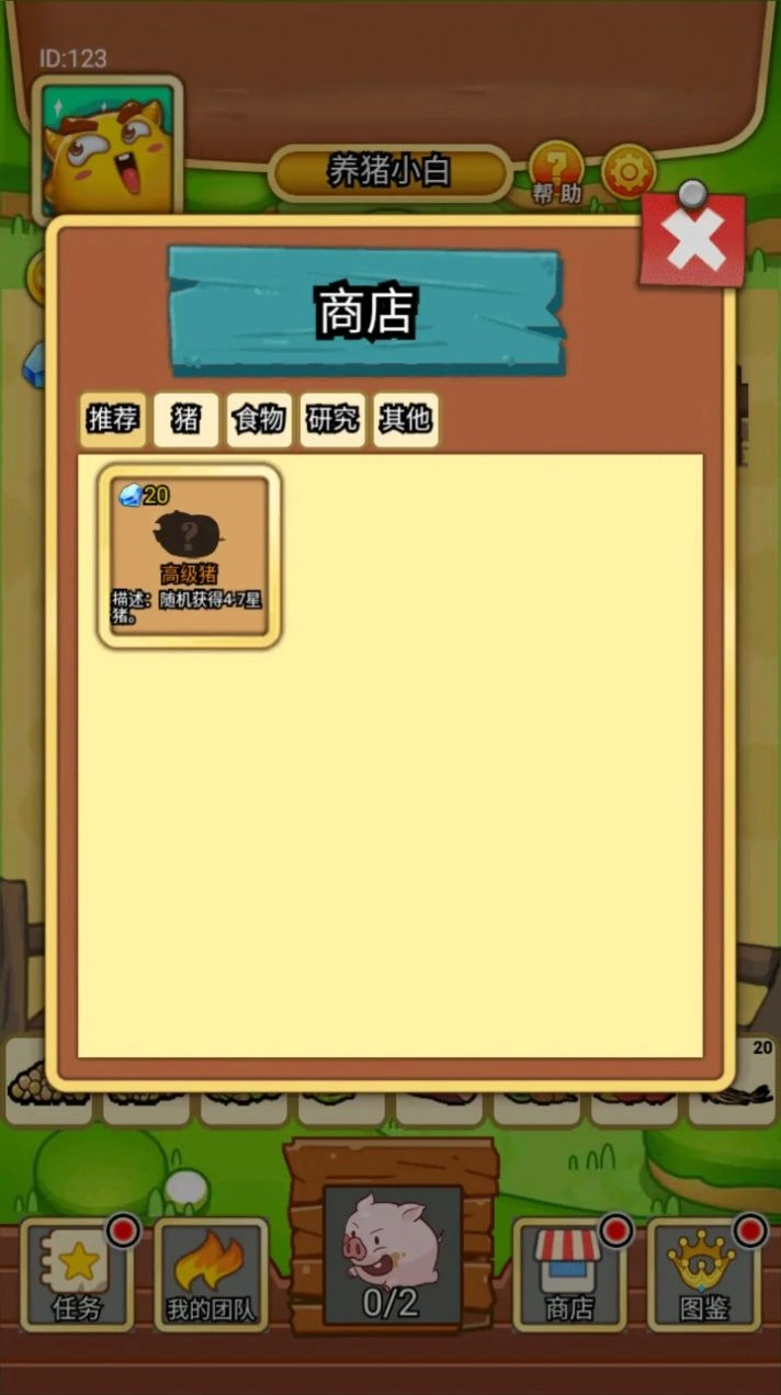 《猪猪牧场》是一款趣味十足的休闲解压游戏。它采用卡通风格的画面设计,角色形象软萌可爱,搭配生动有趣的音效,玩法简单轻松,能为玩家带来惬意愉悦的游戏感受。在游戏里,玩家将拥有并经营一家专属牧场,通过种植各类农作物、饲养可爱小猪来推动牧场发展,还能合成小猪解锁更稀有高级的品种。感兴趣的朋友们,快来开启这场欢乐的牧场之旅吧!