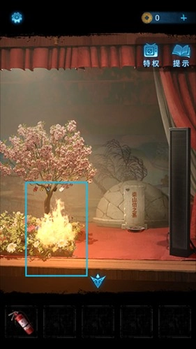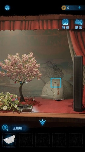 2、用灭火器将戏台上的火灭掉,随后点击起火处拉近镜头,点击白色蝴蝶,得到【玉蝴蝶】。