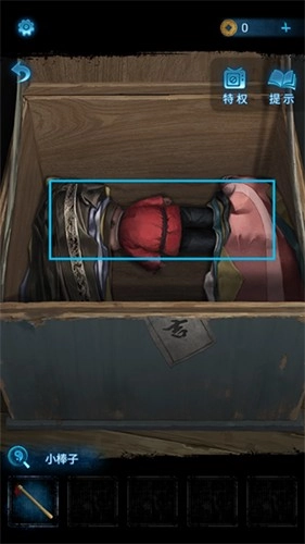 11、进入里屋,在箱子上拿到【小棒子】,并观察纸张上的红色图案信息。