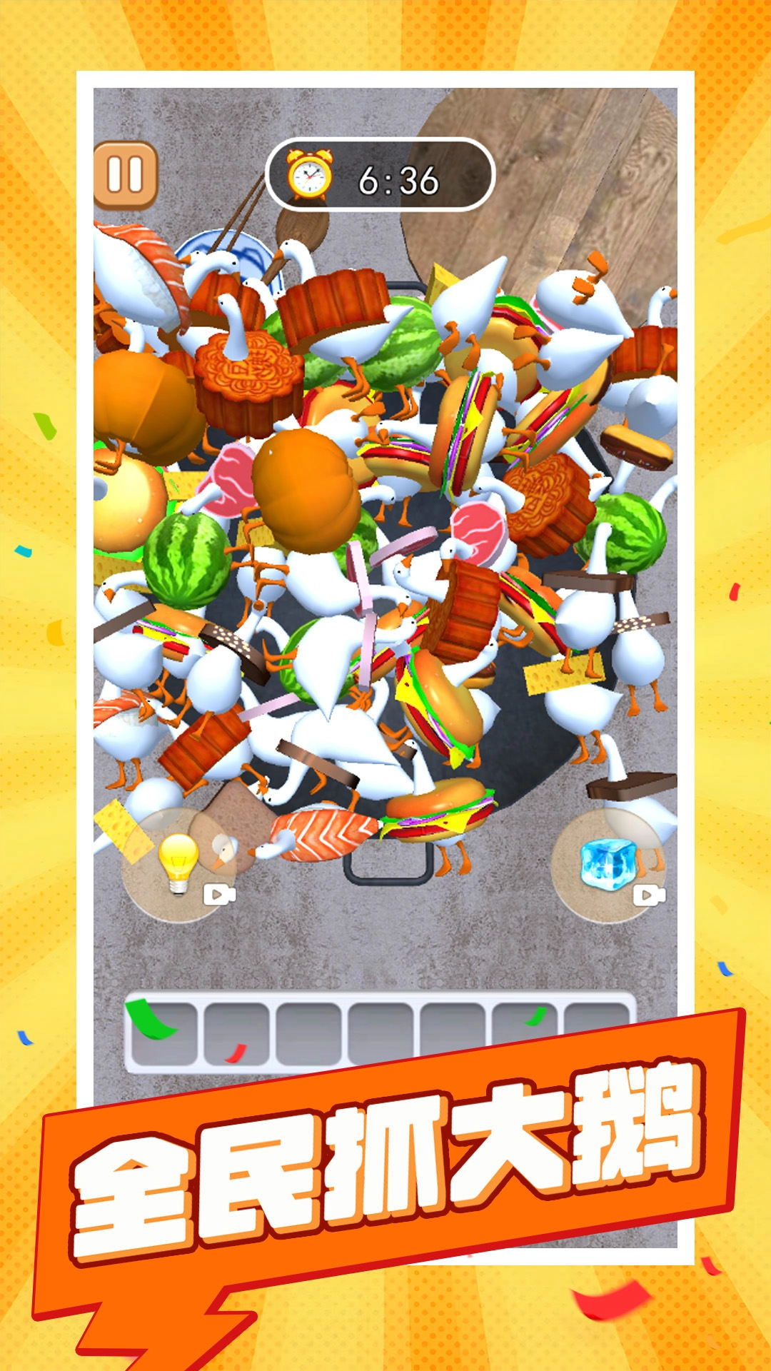 《全民抓大鹅》是一款休闲益智消除闯关游戏,玩家需凑齐三个相同图案才能完成消除。关卡内的图案仅能从上往下拿取,无法穿过上方图案直接获取下方的。只要在规定时间内消除关卡里所有图案,就能成功通关。游戏还提供了不少实用道具,能帮玩家解决棘手状况,感兴趣的朋友不妨来试试!