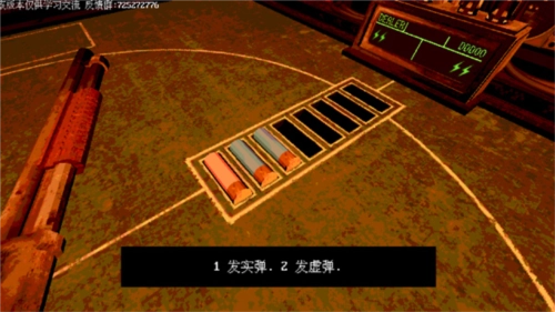 5、游戏规则很简单,玩法类似俄罗斯转盘,桌子上有着一把散弹枪,第一回合有三枚子弹,2枚空弹、1枚真弹,后面的回合真弹会增多;
