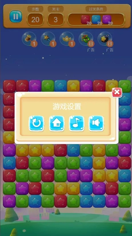 3、达成每关指定任务,如清除障碍物、收集特殊元素等。
