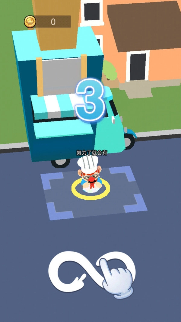 1、游戏开始,谁是大胃王会为各位玩家随机匹配对手,之后玩家需要滑动屏幕控制厨师在场景中收集食材再运送到自己的餐车即可。