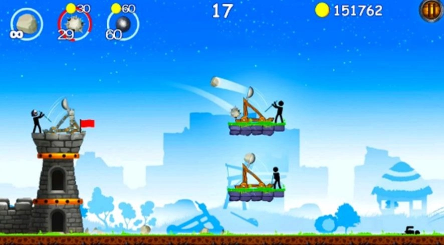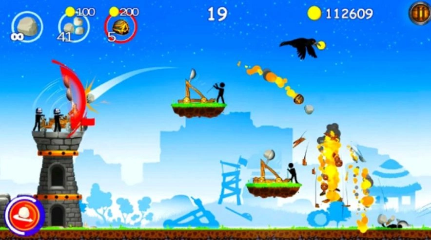 2、游戏中,玩家扮演指挥官,带领火柴人部队,通过投石攻防展开激烈角逐;