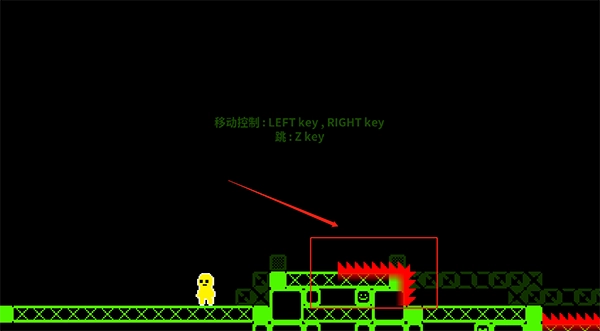 6、游戏内我们通过方向键移动,Z键跳跃,游戏内角色不会死亡,触碰红色锯齿会被反弹击退