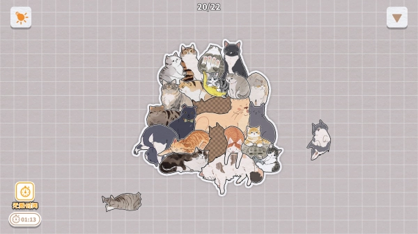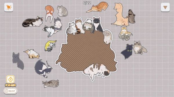 (1)拼图模式:模式内会提供完整模型,玩家需要根据每一只猫猫的特点,将其放到对应的位置即可。