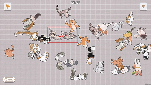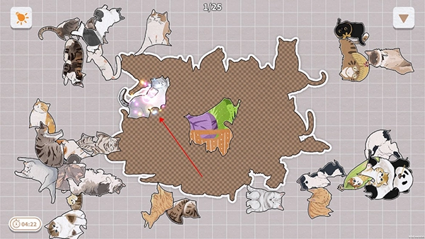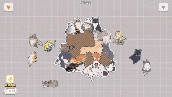 3、开始挑战后,玩家可以通过按住碎片移动,点击碎片旋转来控制猫咪碎片进行拼图。