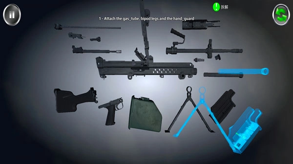 5、你还可以自由的进行任何枪械的拆卸和组装,以三维形式展示,让你对枪械有一个全面的了解;