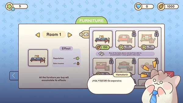 仓鼠旅馆最新版本是一款充满萌趣的模拟经营游戏。玩家将化身为可爱的仓鼠老板,经营一家专门为小动物们服务的旅馆。目标是把它打造成设施完备、服务顶尖的豪华仓鼠旅馆,在满足各类小动物客人需求的过程中,感受经营带来的乐趣与挑战。喜爱这款游戏的玩家,快来体验吧!