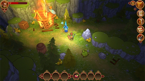 2、但并未精简掉游戏的乐趣。游戏画风可爱鲜艳故事方面比较简单老套,一路打怪升级,