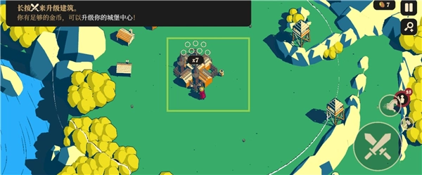 游戏采用日夜循环的机制,晚上玩家需要结算收益并建造建筑,白天则要迎敌打仗,守卫水晶。